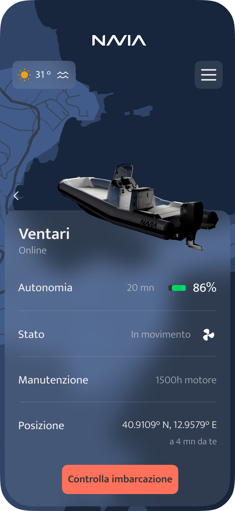 Prendi il controllo totale del tuo business con il software gestionale NAV.IA. Grazie alla tecnologia IoT integrata, ogni barca comunica con te, e in tempo reale saprai dove si trova, la carica residua o se qualcosa non va.